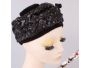 Vintage 1960s Satin Black Straw Raffia Velvet Pillbox Hat by Miss Irene