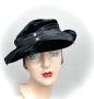 Vintage 30s Black Velvet Wide Brim Tilt Hat