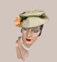 Vintage 50s Beige Straw Scrunched Hat with Tangerine Silk Rose