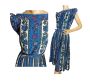 Vintage 50s Dress Fit and Flare Pleated Skirt Blue Floral Print Nylon Jersey by Manford | XS/S