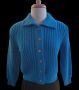 Vintage 50s Pandora Chunky Mixed Knit Cropped Blue Cardigan Sweater, Size Medium