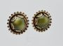 Vintage 60s Emmons Gold Tone Green Moon Glow Lucite Clip On Earrings
