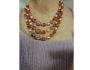 Vintage 60s Triple Strand Necklace Autumn Color Rust Orange Pink and Gold Bead Choker Signed Japan