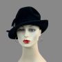 Vintage 70s Black Velour Ladies Angled Fedora by Angel