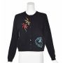 Vintage Black Cashmere Embroidered Cardigan with Leopard Print Chiffon Lining SZ LG