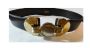 Vintage Black Genuine Leather Belt with Fancy Interlocking Gold & Silver Buckle | S