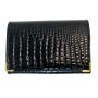 Vintage Black Leather Croc Stamp Organizer Wallet