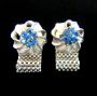 Vintage blue rhinestone silver tone ribbons wrap cufflinks - unisex - 1970s