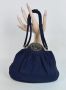 Vintage Navy Blue Faille Pouch Style Handbag with Rhinestones by Claire