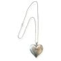 Vintage Oversized Etched Puffy Heart Pendant Necklace in Silver, 23” Long