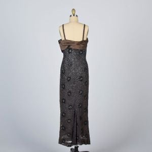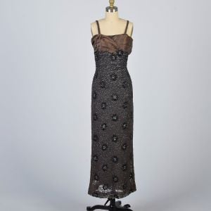 - Morrison & Robertson1950s Evening Dress Beaded Lace Gown Cocktail Black and Brown Floral Starlight Beading$95.00Add to Favorites