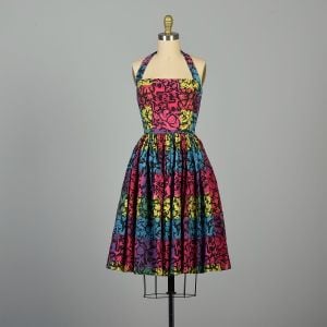 - No label presentVintage 1950s Halter Dress with Shelf Bust Pink Chiffon Size XS$110.00Add to Favorites