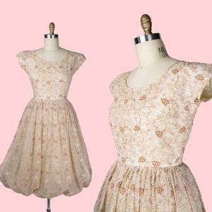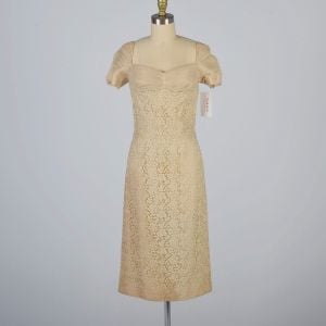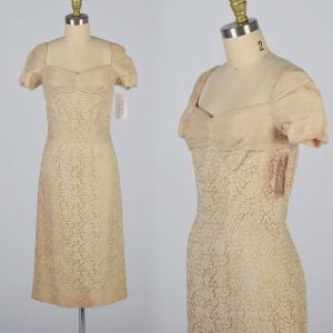 - No Label Present1950s Silk and Lace Cocktail Evening Summer Dress Cream Small$75.00Add to Favorites