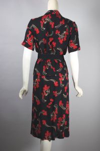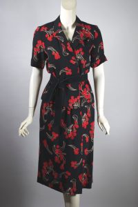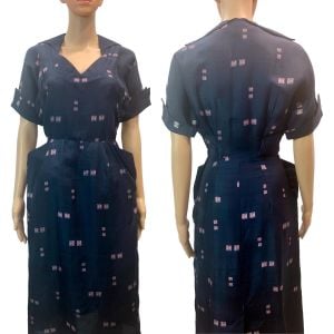 - No Label PresentLarge 1940s Silk Print Black Wool Day Dress Casual Short Sleeve High Waist$225.00Add to Favorites