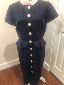 - No Label Present50s Dark Blue Day Dress w Bow Sheer Stripes Scalloped Neckline | S/M$48.00Add to Favorites