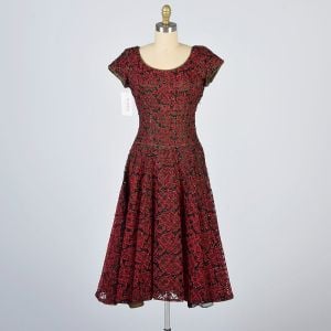 - Miss Jane Junior1950s Red Black Lace Overlay Cocktail Dress Date Night Evening Drop Waist Short Sleeve$295.00Add to Favorites