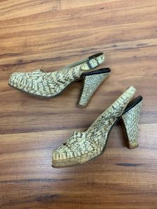- No Label Present1940s Blue Peep Toe Wedge Beach Sandals Post WW2 Womens Open Toe Wedges$95.00Add to Favorites