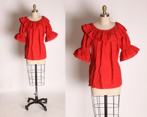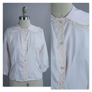 - No Label PresentSmall 1960s Top Black Floral Sheer Lace Blouse 3/4 Long Bell Sleeve Boat Neck Shirt$175.00Add to Favorites