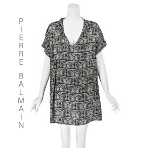 - Solo Bolae Couture, Marcy & CompanyMedium 1990s Tunic Black Metallic Gold Silkscreen Print Oversized Cocoon Dress$95.00Add to Favorites