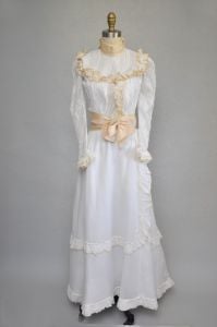 - No label presentantique Victorian 1899 white cotton & silk wedding set dress w/ skirt & bodice XXS/XS$328.00Add to Favorites