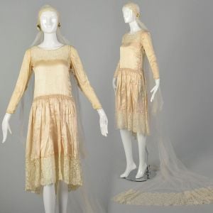 - No Label PresentMedium 1920s Wedding Dress Lace Gown Mesh Veil Long Sleeve As Is$150.00Add to Favorites