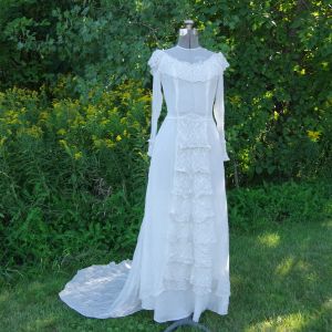 - No Label PresentVintage 1970s Cream Lace Maxi Simple Wedding Dress Bolero Set | Small Petite$129.99Add to Favorites