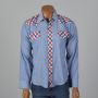 XL 1970s Western Shirt Cotton Blend Red Blue Plaid Flap Pockets Long Sleeve Snap Front