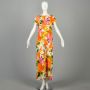 XL | 1960s Short Sleeve Hawaiian Polynesian Floral Print Maxi Dress by Alice