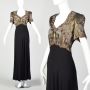 XL 1940s Black Dress Formal Gold Lame Beaded Bodice Long Evening Gown WWII Pin Up Maxi