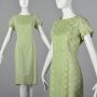 XL 1960s Green Dress White Eyelet Embroidery Short Sleeves Lightweight