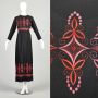 XL 1970s Black Dress Red Pink Embroidery Long Sleeve Casual Maxi Dress