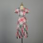 XS 1950s Cotton Dress Pink Plaid Asymmetric Day Dress