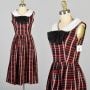 XS 1950s Sleeveless Red and Black Plaid Midi Dress with Peter Pan Collar