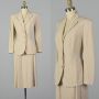 XS 1950s Summer Skirt Suit Sacony Palm Beach Tan Linen Look Lightweight Patch Pockets Long Sleeve