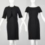 XS 1960s Black Dress Set Wool Sheath Matching Cropped Jacket Pinup Two Piece