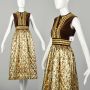XS 1960s Dress Metallic Gold Boho Bohemian Holiday Party