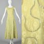 XS 1960s Green Lace Overlay Dress Sequins Long Evening Formal Gown Prom Sleeveless Spring Summer