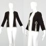 XS 1960s Jacket Brown Velvet Rhinestone Metallic Trim Open Slit Front Mod 3/4 Sleeves Jacket