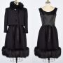 XS 1960s Norman Norell Ensemble Little Black Dress Cropped Jacket Fox Fur Archival Designer