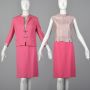 XS 1960s Pink Skirt Suit Rhinestone Button Jacket Sleeveless Top Knee Length 3 Piece Set