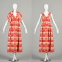 XS 1970s Red White Plaid Dress Flower Rhinestone Sleeveless V Neck Maxi Dress with Wrap Nan Duskin