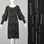 XS 1980s Argenti Black Dress Silver Beaded Sequin Long Bishop Sleeves Cocktail Party