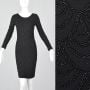 XS 1990s Carmen Marc Valvo Black Beaded Pencil Dress Tight Long Sleeves Low Back