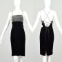 XS 1990s Dark Navy Blue Black Dress Silver Lurex Glitter Dot Corset Back Tie Velvet Mini Dress