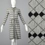 XS Gray Knit Dress 1970s Black Argyle Print Long Sleeve Winter Dress