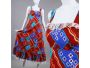 Shown unclipped on model (model is 5'10'' and 31.5''/23.5''/33.5''). There is some stretch to the material and should best fit a modern size XS.