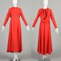 XS/Small 1970s Hooded Maxi Dress Empire Waist Long Sleeved Faux Hood Full Skirt