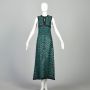 XXS | Green, Blue And Purple 1970s Sleeveless Empire Waist Keyhole Bust Evening Dress by Fannye's
