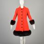 XXS 1960s Bright Red Fox Fur Trimmed Coat