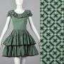 XXS 1960s Green Patio Skirt Set Square Dance Matching Separates Ruffled Mini Skirt Short Sleeve Top
